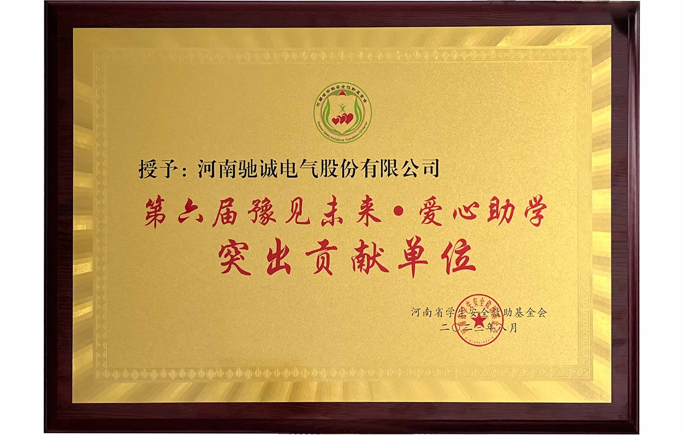 豫見未來·愛心助學突出貢獻單位