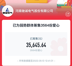 馳誠電氣牢記企業(yè)責(zé)任與社會(huì)責(zé)任,先后參與了“兒童福利院愛心捐助”、“抗震救災(zāi)”、“防疫愛心捐助”、“抗洪救災(zāi)”、“愛心助學(xué)”等多項(xiàng)公益事業(yè),用自己的涓滴之力,為社會(huì)發(fā)展做貢獻(xiàn)!
